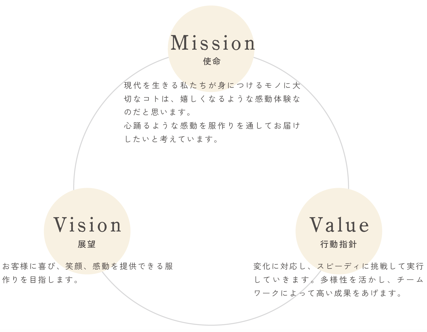 デザイナーによる様々な服のアイデアや経験豊富な職人による縫製技術の